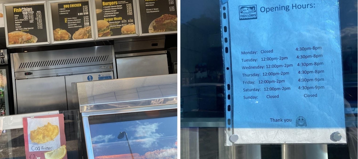 Only visiting the area, so followed the reviews. Friendly staff and generous portions (had the medium Fish which was basically a large). All food freshly prepared and delicious. I Would recommend and use again if in the area.